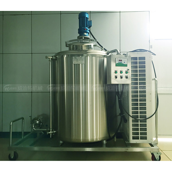 立式制冷罐設(shè)備結(jié)構(gòu):主要由罐體、攪拌器、制冷機組、電氣控制等幾部分組成。立式制冷罐罐體采用雙層不銹鋼制成,經(jīng)精密拋光處理,污垢不易積存,易清洗耐腐蝕。在內(nèi)外罐體之間采用了聚胺酯硬質(zhì)泡沫板,該材料具有導(dǎo)熱系數(shù)低、比重輕、強度高、吸水率低的保溫層,保溫性能好。立式制冷罐設(shè)計、制造技術(shù)先進、性能可靠,冷卻、保溫性能和衛(wèi)生標準均符合國際先進水平。